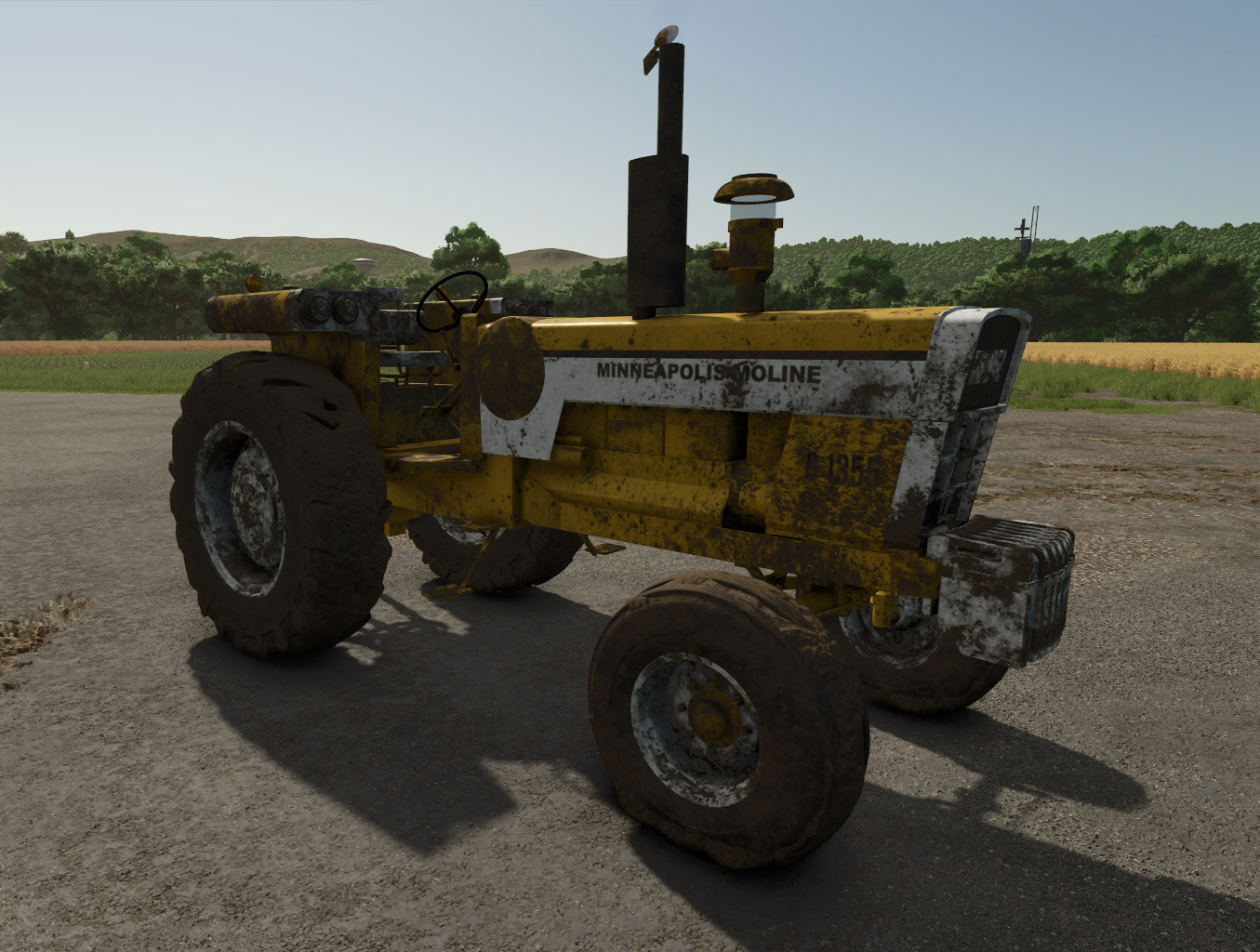Here is the Minneapolis Moline G1355 for FS25. Options for the tractor is Fender, Fender2, or a Cab. Weights are None, 560, 760, and 1010. Tire options are Standerd or duals. another option is a LP tank on the hood. Rear tire are in game tires. This mod has been ran though test runner and is 100% error free. Thanks and enjoy the MMG1355!